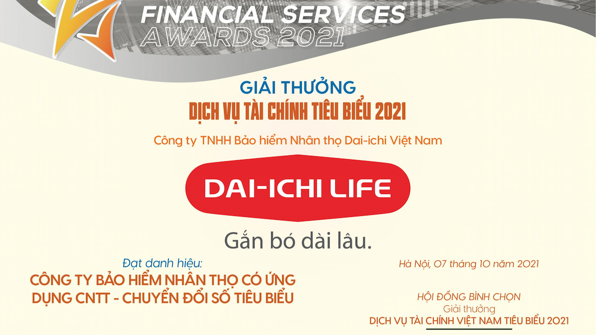 Dai-ichi Life Việt Nam vinh dự nhận giải thưởng “Công ty Bảo hiểm Nhân thọ có Ứng dụng Công nghệ Thông tin – Chuyển đổi số tiêu biểu năm 2021”